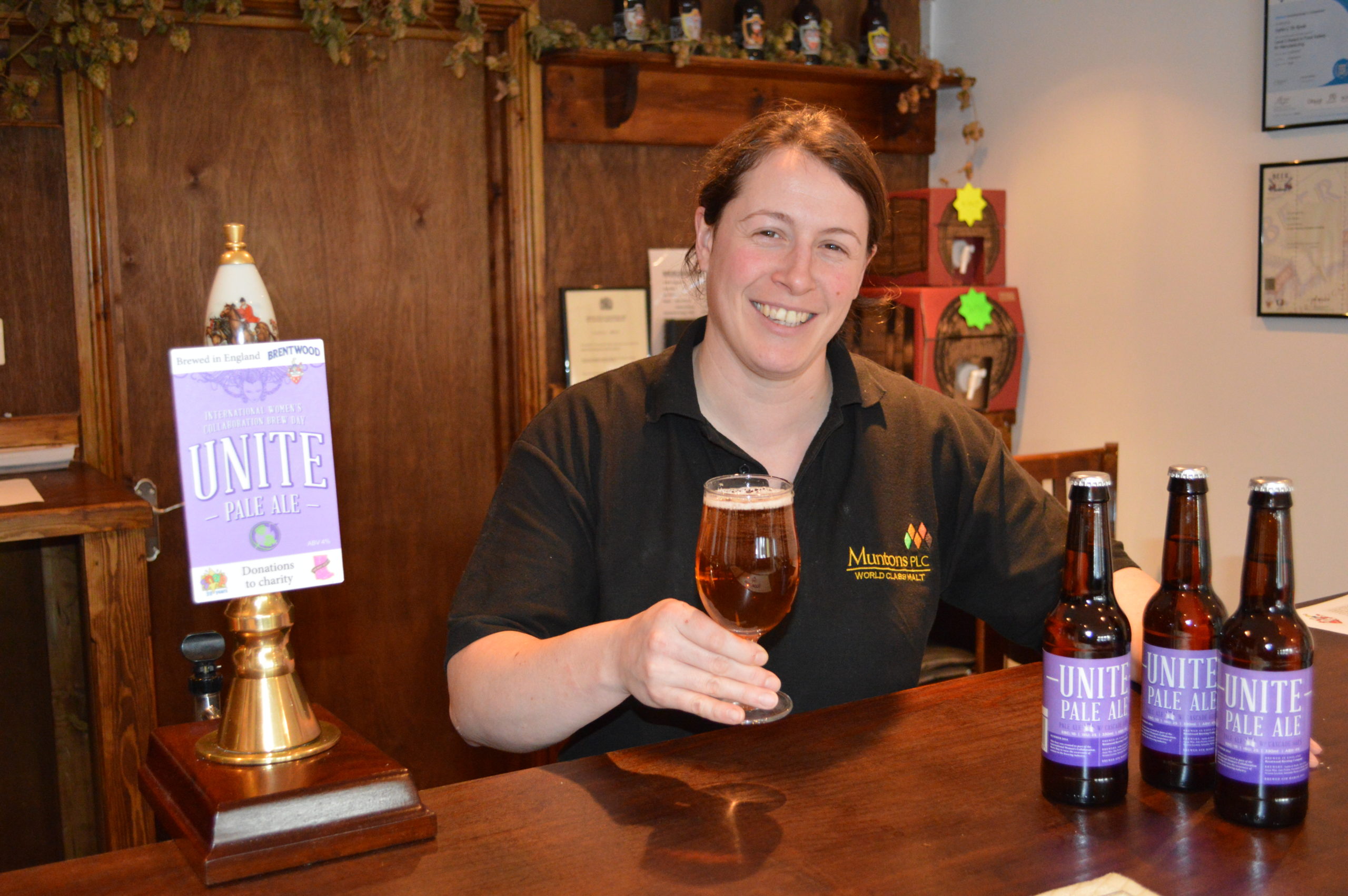 More than 70 breweries worldwide took part in the first International Women’s Collaboration Brew Day on International Women’s Day, March 8th. Following the same recipe parameters but choosing their own additional flavourings, they each brewed unique versions of Unite Pale Ale 4%. Brewsters are being encouraged to make charity donations from the sale of this beer. Brentwood Brewing Company will be making donations to Warley-based children’s charity SNAP as well as the Brewster’s charity, The Pink Boots Society based in America.